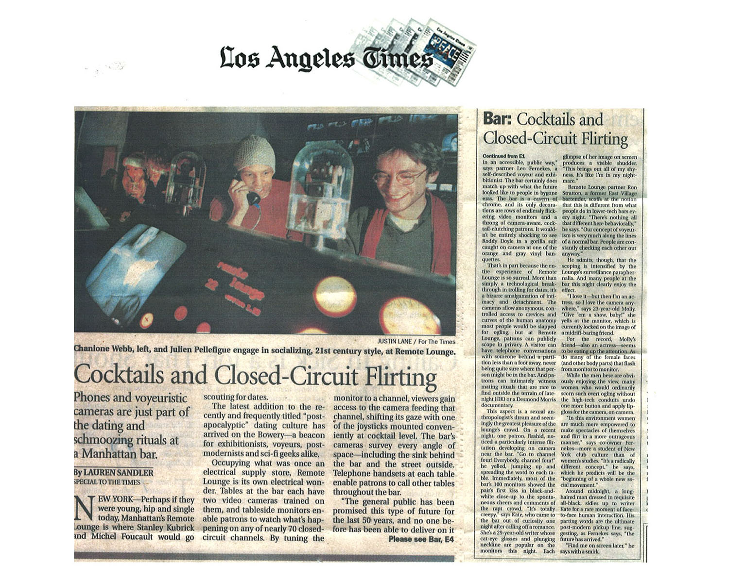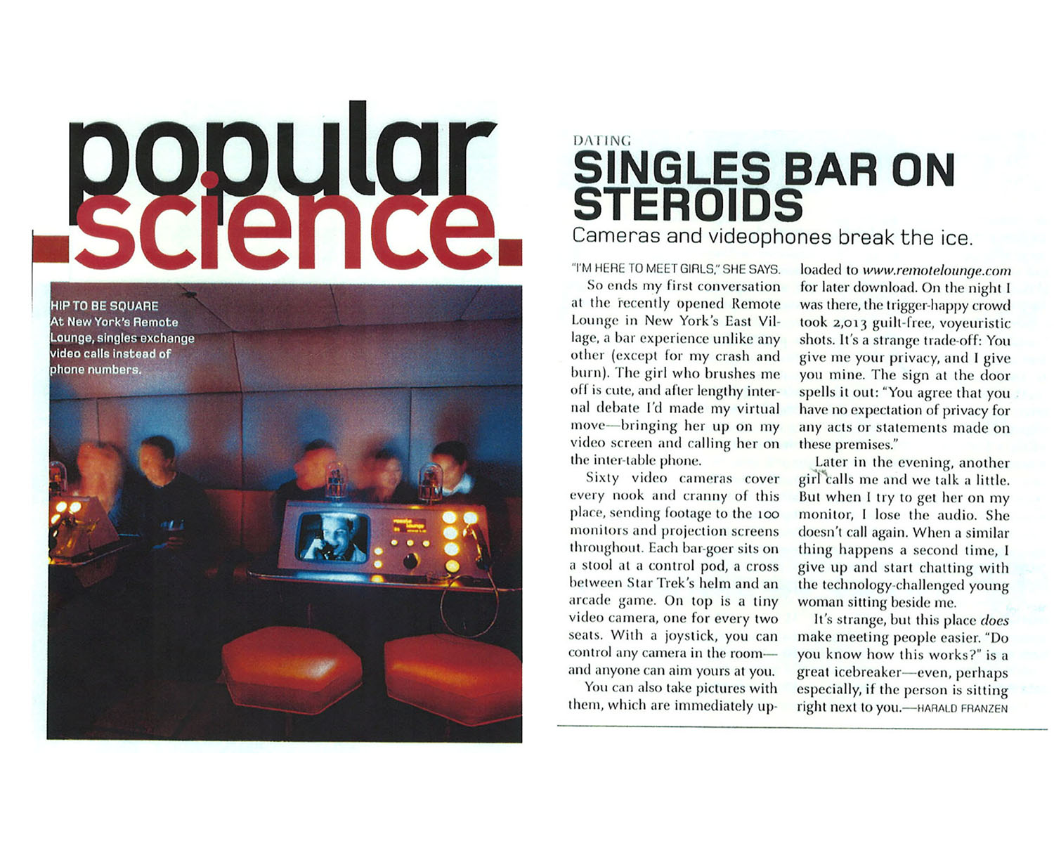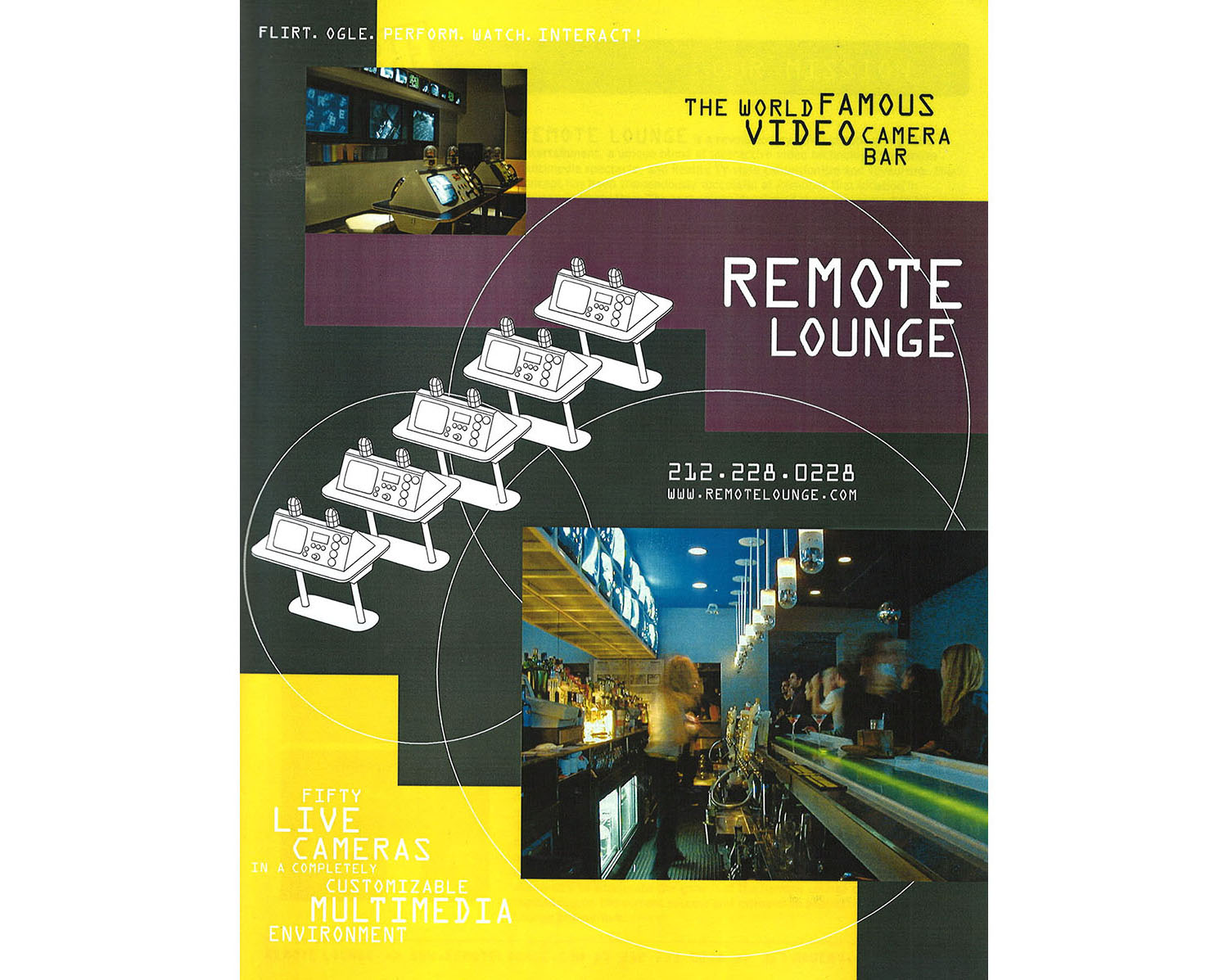 Located in NYC's Bowery District, Remote Lounge was a digital entertainment cocktail lounge, a unique blend of interactive video technology, immersive multimedia spectacle, and reality TV-style exhibitionism and voyeurism.