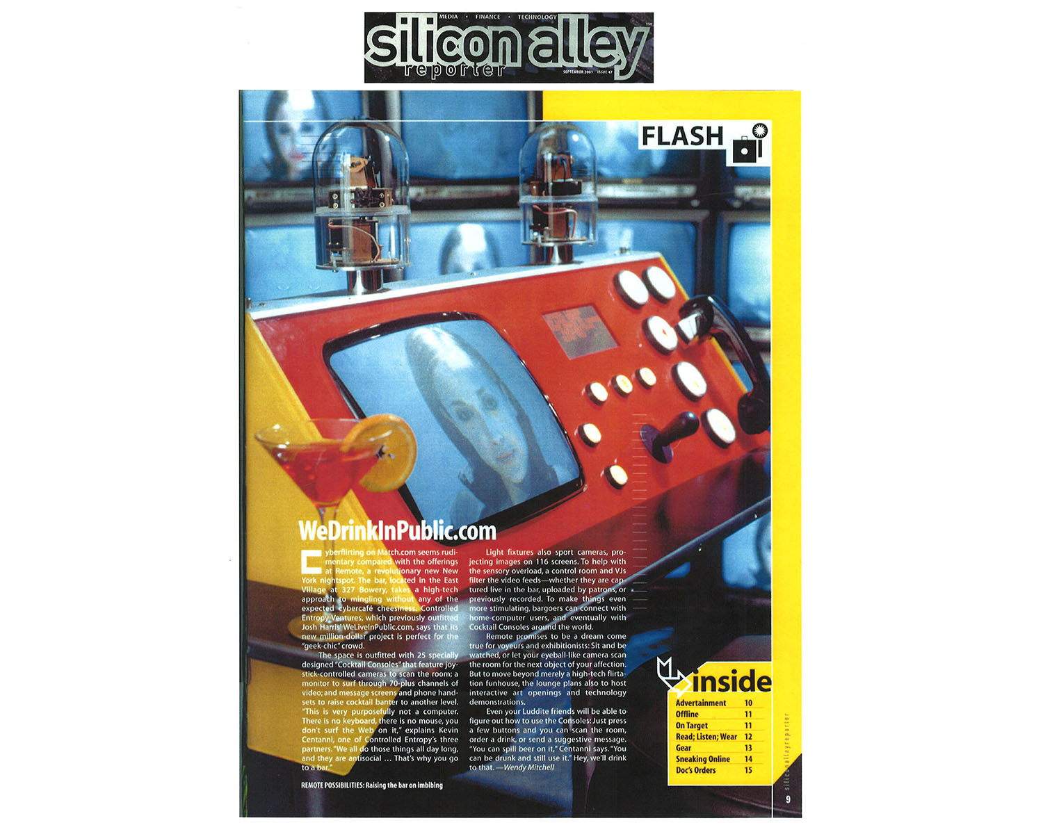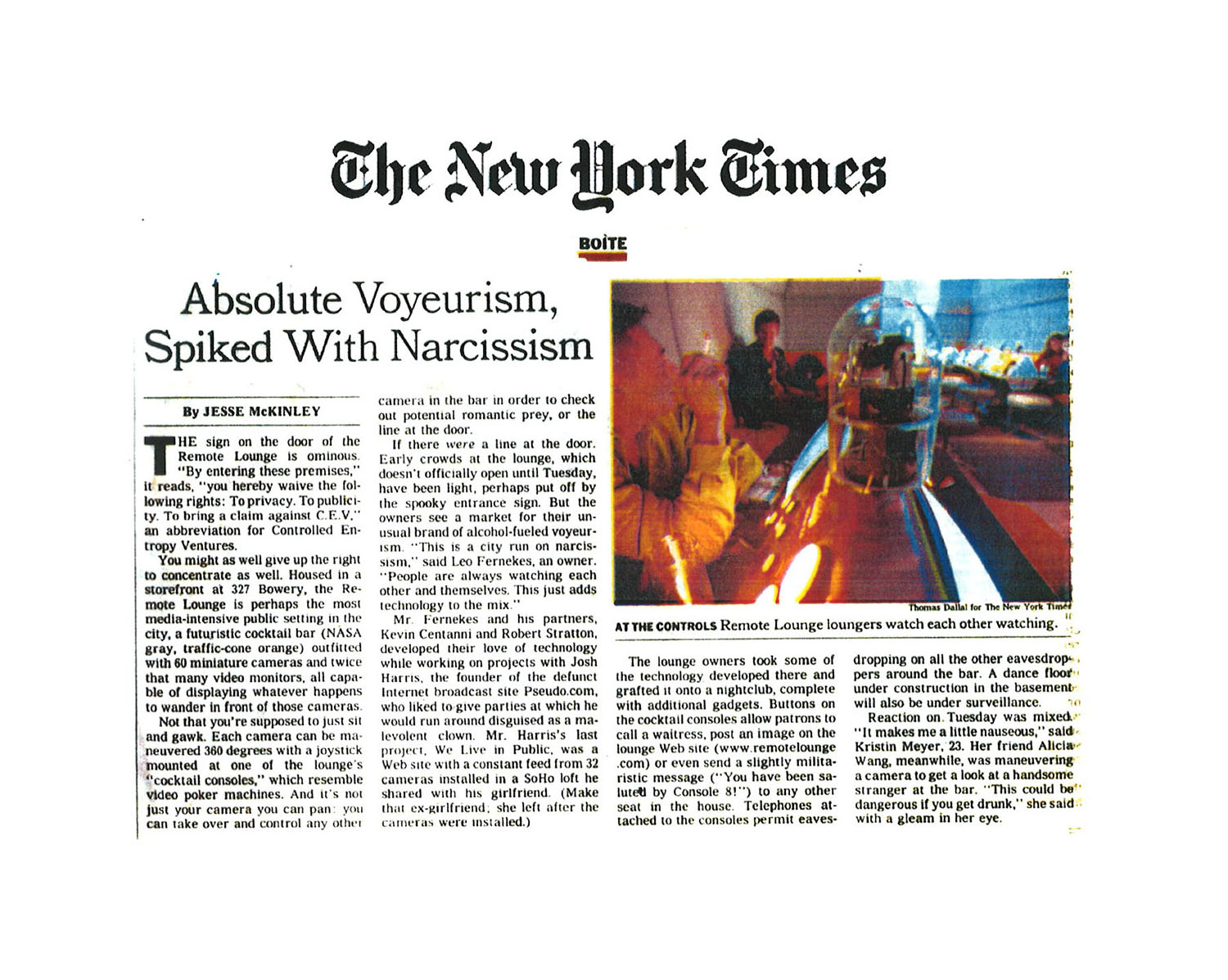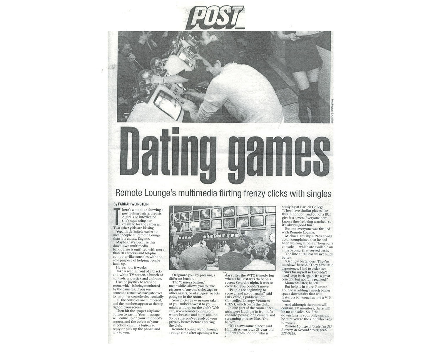 Located in NYC's Bowery District, Remote Lounge was a digital entertainment cocktail lounge, a unique blend of interactive video technology, immersive multimedia spectacle, and reality TV-style exhibitionism and voyeurism.